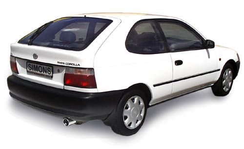 Simons aluminierte Stahl Sport Auspuffanlage 1×90 mm rund passend für Toyota Corolla Typ E10 Fließheck 1.3 65 kW Baujahr 5/92-7/95