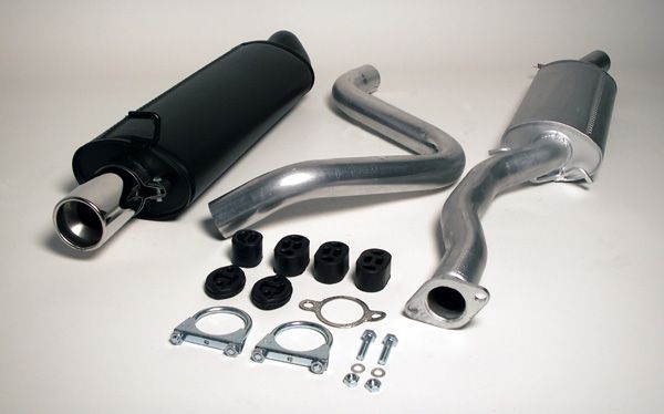 aluminierte Stahl Sport Auspuffanlage 1×90 mm rund verstellbar für Ford Escort Coupe 3/5 Türer und Cabrio 1.6/1.8