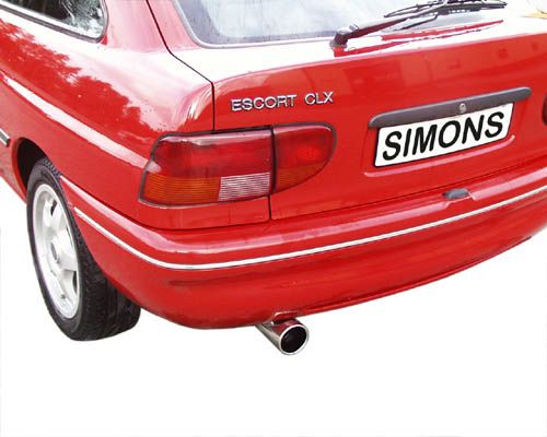 Simons aluminierte Stahl Sport Auspuffanlage 1×90 mm rund verstellbar passend für Ford Escort Coupe 3/5 Türer und Cabrio 1.6/1.8
