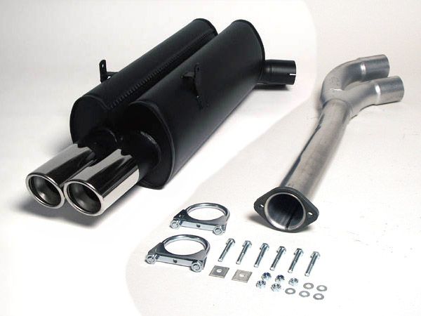 aluminierte Stahl Sport Auspuffanlage 2×80 mm rund für BMW E36 Limousine/Coupe/Cabrio/Touring 320i/323i Baujahr 12/90-97