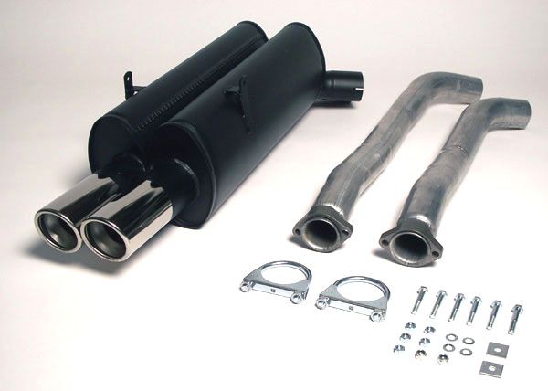 aluminierte Stahl Sport Auspuffanlage 2×80 mm rund für BMW E36 Limousine/Coupe/Cabrio/Touring 325i/328i Baujahr 12/90-97