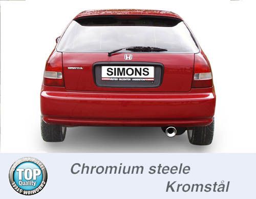 Simons Chromstahl Sport Auspuffanlage 1x100mm rund passend für Honda Civic Fließheck 3/5 Türer 1.5-1.6 Baujahr 92-00 mit 2-Loch-Flansch