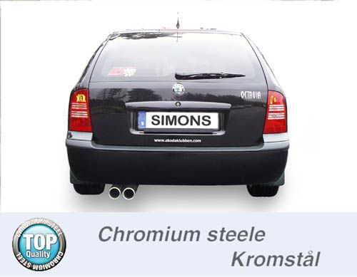 Simons Chromstahl Sport Auspuffanlage 2×80 mm rund passend für Skoda Octavia Limousine/Kombi 1.8 Turbo/1.9TDI nicht RS