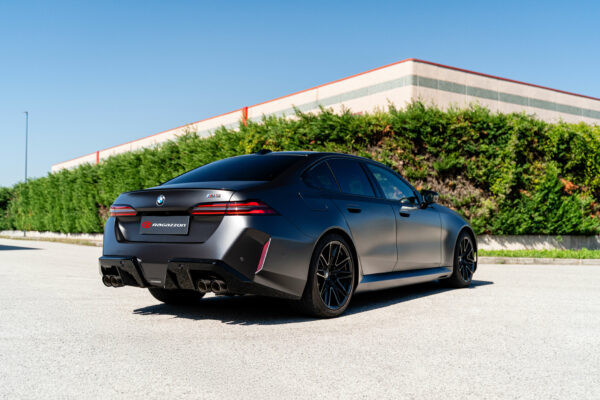 Performance-Abgasanlage aus hochwertigem Edelstahl, entwickelt für den aktuellen BMW M5 G90 Sedan mit 4.4L V8 Hybrid-Antrieb. Das System kombiniert eine sportlichere Klangcharakteristik mit OEM-integrierter Klappensteuerung und perfekter Passgenauigkeit.