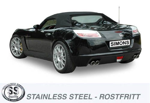 Simons Edelstahl Duplex Sport Auspuffanlage 3″ Zoll (76mm) Endrohr 2x80mm passend für Opel GT 2,0 Turbo Z20NHH Baujahr 06-