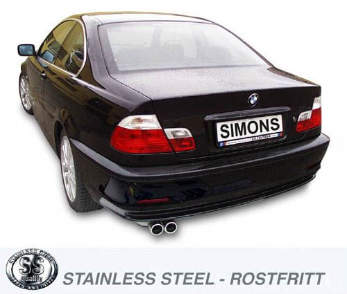 Simons Edelstahl Sport Auspuffanlage 2×70 mm rund passend für BMW E46 Limousine/Coupe/Touring 320i/325i/330i Baujahr 99-