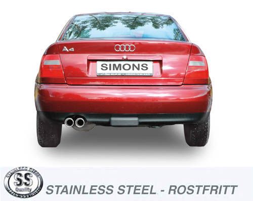 Simons Edelstahl Sport Auspuffanlage 2×80 mm rund passend für Audi A4 (B5) Limousine/Avant 2.4 165PS/2.8 193PS Baujahr 98-00