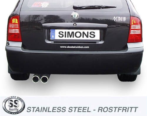 Simons Edelstahl Sport Auspuffanlage 2×80 mm rund passend für Skoda Octavia Limousine/Kombi 1.8 Turbo/1.9TDI nicht RS