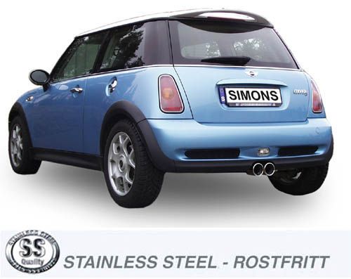 Simons Edelstahl Sport Auspuffanlage 2x80mm rund passend für Mini Cooper S Baujahr 01-