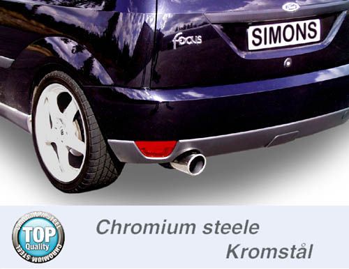 Simons Chromstahl Sport Auspuffanlage 1×100 mm rund passend für Ford Focus I Fließheck 1.4/1.6 Baujahr -8/04