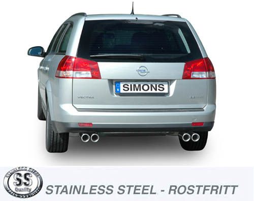 Simons Edelstahl Duplex Sport Auspuffanlage 2x80mm rund Opel Vectra C Car 4/5 Türer 1.8/2.0T/2.2/3.2/1.9CDTi/2.0DTi/2.2DTi/3.0CDTi Bauj.02-